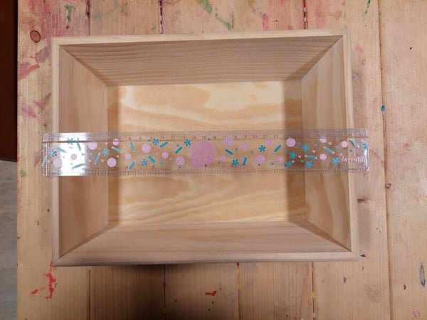 Deze speelbak is 16,5 x 25,5 x 7,5 cm. De maten zijn aan de onderkant genomen. Hij loopt naar boven uit.