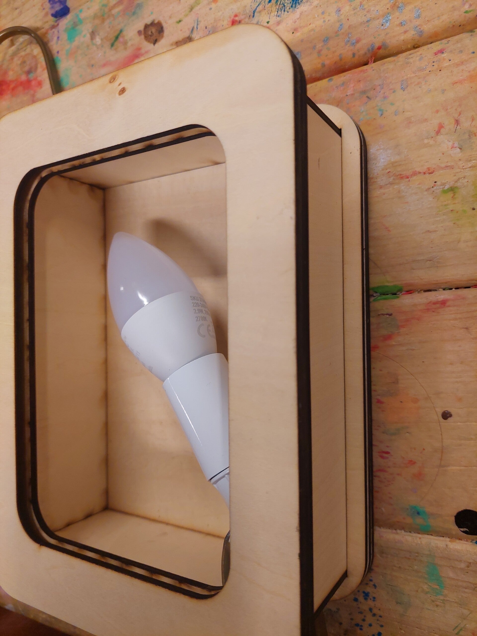 Deze A6 kaartenlamp met gouden snoer en kaartenvak voor 8 kaarten is prima, maar op de voorkant zitten 2 noesten waar je van moet houden. D