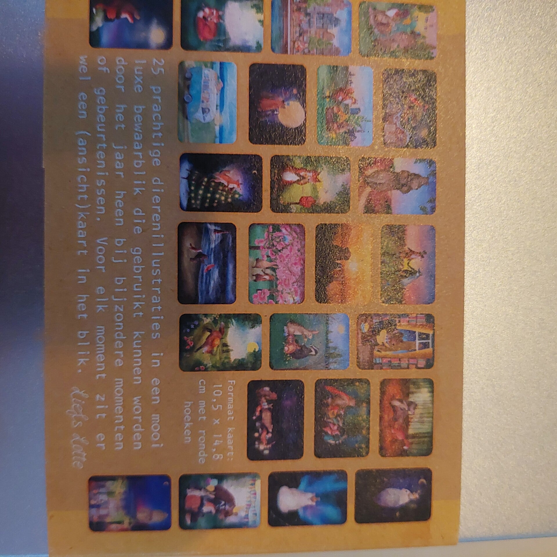 25 prachtige dierenillustraties in een mooi luxe bewaarblik die gebruikt kunnen worden door het jaar heen, bij bijzondere momenten of gebeurtenissen. Voor elk moment zit er wel een passende kaart in het blik. De kaarten hebben afgeronde hoeken, maar passen gewoon in de kaartenlamp
